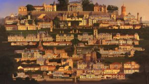 •  Художественное мастерство: Мастерство Карла Лоубина в изображении архитектуры и ландшафта очевидно в замысловатых деталях каждого поместья.